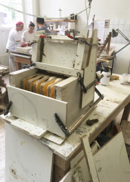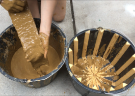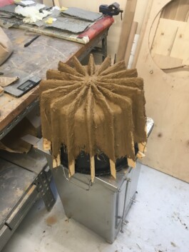 TO ENSURE BASIC TENSILE STRENGTH, THE FORMWORK WAS PRODUCED USING AN INTERLOCKING LAYERED STRUCTURE OF COARSE-MESHEDJUTE FABRIC. THIS MATERIAL CHOICE IS CRITICAL: THE ROUGH SURFACE OF THE NATURAL FIBER ABSORBS A HIGH VOLUME OF CLAY, WHILE THE INDIVIDUAL LAYERS INTERLOCK DURING DRYING SHRINKAGE TO FORM A COHESIVE, HETEROGENEOUS UNIT.